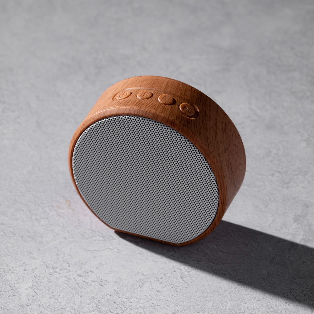 The frame is crafted from natural wood grain and paired with a metal mesh cover, blending retro texture with modern craftsmanship.